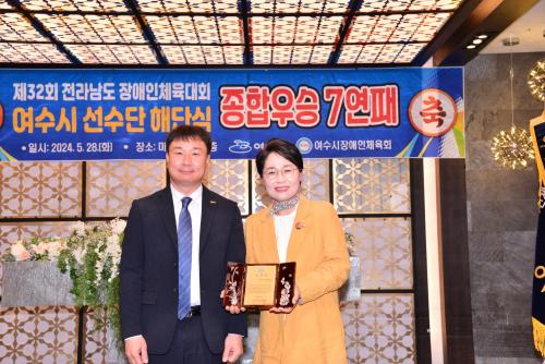 ¿©¼ö½ÃÀÇȸ ȯ°æº¹ÁöÀ§¿øÀå ¹Î´öÈñ ½ÃÀÇ¿ø, Àå¾ÖÀÎüÀ°È¸·ÎºÎÅÍ °¨»çÆÐ ¼ö»ó