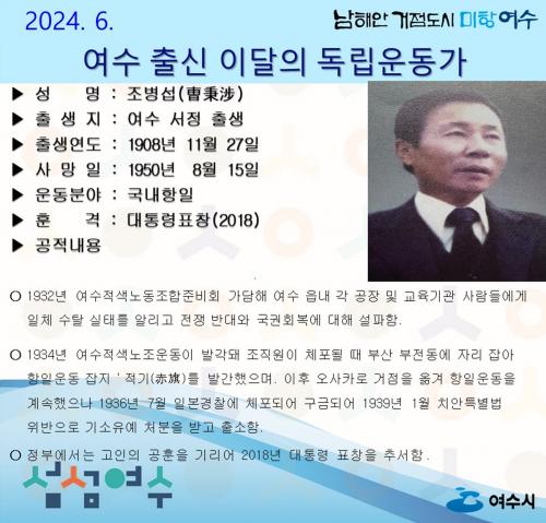 ¿©¼ö½Ã, 6¿ùÀÇ µ¶¸³¿îµ¿°¡, ¼­Á¤ Å»ý ¡®Á¶º´¼· ¼±»ý¡¯ ¼±Á¤