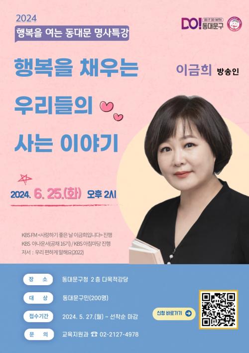 [t½Åµ¿¾Æ¹æ¼Û µ¿´ë¹®±¸=À̽ŵ¿±âÀÚ]¼­¿ï µ¿´ë¹®±¸´Â 6¿ù 25ÀÏ(È­) ¿ÀÈÄ 2½Ã µ¿´ë¹®±¸Ã» 2Ãþ ´Ù¸ñÀû °­´ç¿¡¼­ ¹æ¼ÛÀÎ À̱ÝÈñ °­»ç¸¦ ÃÊûÇÏ¿© ¡®ÇູÀ» ä¿ì´Â ¿ì¸®µéÀÇ »ç´Â À̾߱⡯¸¦ ÁÖÁ¦·Î ¸í»çƯ°­À» ÁøÇàÇÑ´Ù. À̱ÝÈñ °­»ç´Â KBS ¡®¾ÆÄ§¸¶´ç¡¯À» ºñ·ÔÇÏ¿© ´Ù¾ç¡¦