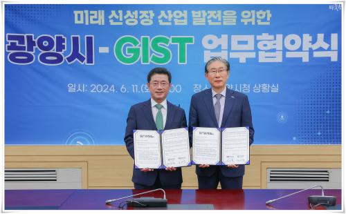 [½Åµ¿¾Æ¹æ¼Û°ø¾ç=¹Ú±¤¿Á±âÀÚ] ±¤¾ç½Ã´Â ±¤ÁÖ°úÇбâ¼ú¿ø(GIST)°ú ÀΰøÁö´É(AI), ·Îº¿, ÀÌÂ÷ÀüÁö ºÐ¾ß ÀÎÀç ¾ç¼º µî ½Å»ê¾÷ À°¼º¿¡ °øµ¿ Çù·ÂÀ» À§ÇÑ ¾÷¹«Çù¾à(MOU)À» ü°áÇß´Ù°í ¹àÇû´Ù. 11ÀÏ ½Ãû »óȲ½Ç¿¡¼­ ¿­¸° ¾÷¹«Çù¾à½ÄÀº Á¤ÀÎÈ­ ±¤¾ç½ÃÀå°ú ÀÓ±âö ±¤ÁÖ°úÇб⡦