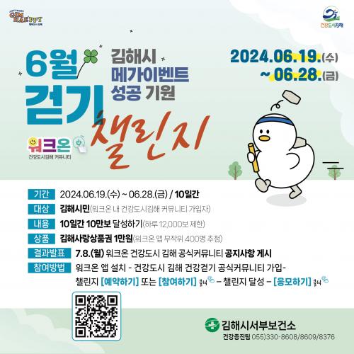 [½Åµ¿¾Æ¹æ¼Û´º½º=ÀÌÁ¶Àº±âÀÚ] ±èÇØ½Ã¼­ºÎº¸°Ç¼Ò´Â ¡®±èÇØ½Ã ¸Þ°¡À̺¥Æ® ¼º°ø ±â¿ø 6¿ù °È±â 縰Áö¡¯¸¦ °³ÃÖÇÑ´Ù°í 13ÀÏ ¹àÇû´Ù. ¿ÃÇØ ½Ã°¡ ÁÖ°üÇÏ´Â 3´ë ¸Þ°¡À̺¥Æ®(Àü±¹(Àå¾ÖÀÎ)üÀü¡¤µ¿¾Æ½Ã¾Æ¹®È­µµ½Ã¡¤±èÇØ¹æ¹®ÀÇÇØ)¸¦ ¾Ë¸®°í ½Ã¹ÎµéÀÇ °È±â¿îµ¿ Á¤ÂøÀ» À§ÇØ ±â¡¦