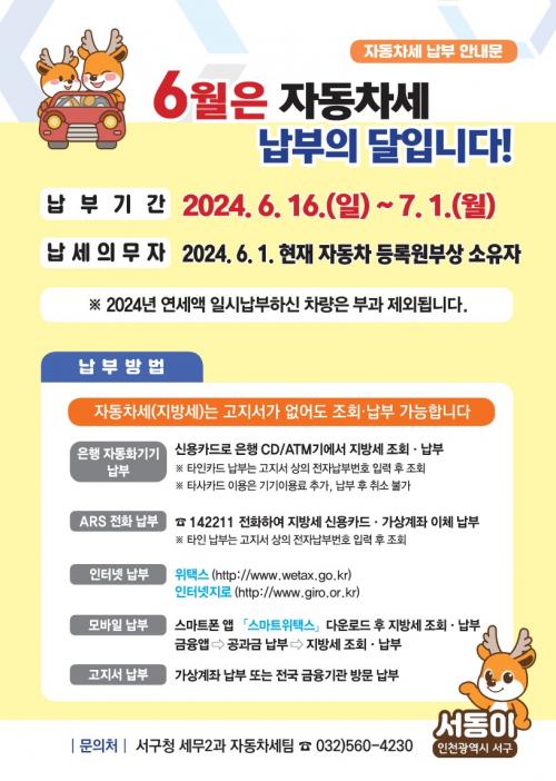 [½Åµ¿¾Æ¹æ¼Û ÀÎõ= À±¹Î½Ä±âÀÚ]ÀÎõ ¼­±¸(±¸Ã»Àå °­¹ü¼®)°¡ 2024³â Á¦1±âºÐ ÀÚµ¿Â÷¼¼ 19¸¸ °Ç, 217¾ï ¿øÀ» ºÎ°úÇϰí 7¿ù 1ÀϱîÁö ³³ºÎ¸¦ ´çºÎÇÏ´Â µî Àû±ØÀûÀÎ È«º¸¿¡ ³ª¼¹´Ù. À̹ø ºÎ°ú¾×Àº Àü³â´ëºñ 8¾ï ¿ø(3.6%) Áõ°¡ÇÑ ¼öÄ¡ÀÌ´Ù. Á¦1±âºÐ ÀÚµ¿Â÷¼¼´Â 6¿ù 1ÀÏ ¡¦