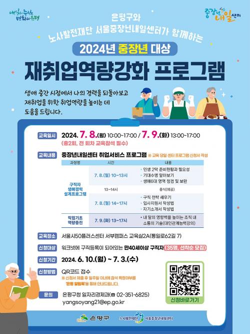 [½Åµ¿¾Æ¹æ¼Û ÀºÆò±¸=À̽ŵ¿±âÀÚ]ÀºÆò±¸´Â ³»´Þ 3ÀϱîÁö ¡®2024³â ÁßÀå³â ´ë»ó ÀçÃë¾÷¿ª·®°­È­ ÇÁ·Î±×·¥¡¯À» ½Åû¹Þ´Â´Ù°í ¹àÇû´Ù. ¡®ÀçÃë¾÷¿ª·®°­È­ ÇÁ·Î±×·¥¡¯Àº »ý¾Ö Áß°£½ÃÁ¡¿¡ ÀÖ´Â ÁßÀå³â ±¸Á÷ÀÚµéÀÌ º»ÀÎÀÇ °æ·ÂÀ» µÇµ¹¾Æº¸°í ±¸Á÷ Àü·« µîÀ» ¼¼¿ì´Â ±¸Á÷ÀÚ »ý¡¦