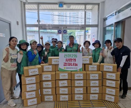 [½Åµ¿¾Æ¹æ¼Û Çϳ²½Ã=À̽ŵ¿±âÀÚ]½ÅÀå2µ¿ »õ¸¶À»ÇùÀÇȸ¡¤ºÎ³àȸ(ÁöµµÀÚȸÀå ÀÓ¿ÀÇö, ºÎ³àȸÀå ÃÖ¿µÇý)¿¡¼­´Â Áö³­ 20ÀÏ ¾î·Á¿î ÀÌ¿ô°ú ÇÔ²²Çϱâ À§ÇÑ »ç¶ûÀÇ °¨ÀÚ ³ª´® Çà»ç¸¦ ÁøÇàÇß´Ù. À̳¯ ¼öÈ®ÇÑ °¨ÀÚ´Â Áö³­ 3¿ù¿¡ ÆÄÁ¾Çß´ø °¨ÀÚ·Î µ¶°Å³ëÀÎ µî °ü³» Ãë¾à°èÃþ ¡¦