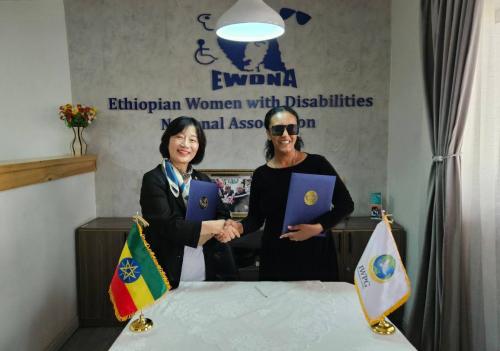 [½Åµ¿¾Æ¹æ¼Û¿©¼ö=±è±â³² ±âÀÚ] ©Å¼¼°è¿©¼ºÆòÈ­±×·ì(IWPG) ±Û·Î¹ú 2±¹(±Û·Î¹ú±¹Àå À̼­¿¬)ÀÌ Áö³­ 7ÀÏ ¿¡Æ¼¿ÀÇÇ¾Æ Àå¾Ö ¿©¼º ¹ÎÁ·¿¬ÇÕ(EWDNA) ´ëÇ¥ µð¹Ùº£ ¹ÙÂ÷¿Í ÇÕÀǰ¢¼­(MOA)¸¦ ü°áÇß´Ù. EWDNA(Ethiopian Women with Disability National Association)´Â ¾Æµð¡¦