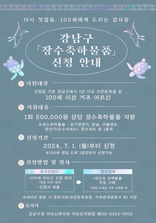 [½Åµ¿¾Æ¹æ¼Û °­³²±¸=À̽ŵ¿±âÀÚ]°­³²±¸(±¸Ã»Àå Á¶¼º¸í)°¡ ¿À´Â 7¿ùºÎÅÍ 100¼¼ ÀÌ»ó °ÅÁÖ ¾î¸£½Å¿¡°Ô 50¸¸ ¿ø »ó´çÀÇ ÃàÇÏ ¼±¹°À» Á¦°øÇÑ´Ù. 100¼¼ ÀÌ»ó °­³²±¸¹ÎÀº 95¸íÀ¸·Î ¼­¿ï½Ã(1504¸í)ÀÇ 6.3%¸¦ Â÷ÁöÇϰí ÀÖ´Ù. ÀÌ´Â 25°³ ÀÚÄ¡±¸ °¡¿îµ¥ °¡Àå ¸¹Àº ¼öÄ¡´Ù. ±¸´Â¡¦