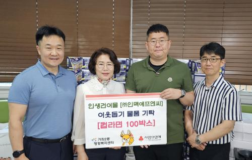 [½Åµ¿¾Æ¹æ¼Û ÀÎõ= À±¹Î½Ä±âÀÚ] °¡ÁÂ2µ¿ ÇàÁ¤º¹Áö¼¾ÅÍ(µ¿Àå À̼­Áø)´Â 7¿ù 2ÀÏ Àλý°Ç¾î¹°À» ¿î¿µÇÏ´Â ¢ßÀθƿ¡ÇÁ¿£¾¾(´ëÇ¥ °íÇü±â)·ÎºÎÅÍ °¡ÁÂ2µ¿ °ü³» Àú¼ÒµæÃþÀ» À§ÇÑ »ç¶û³ª´® ÄŶó¸é 100¹Ú½º¸¦ ±âŹ¹Þ¾Ò´Ù. ¢ßÀθƿ¡ÇÁ¿£¾¾´Â ÀÎõ ¼­±¸¿¡ Á÷¿µÁ¡À» °³¾÷Çϸ鼭¡¦