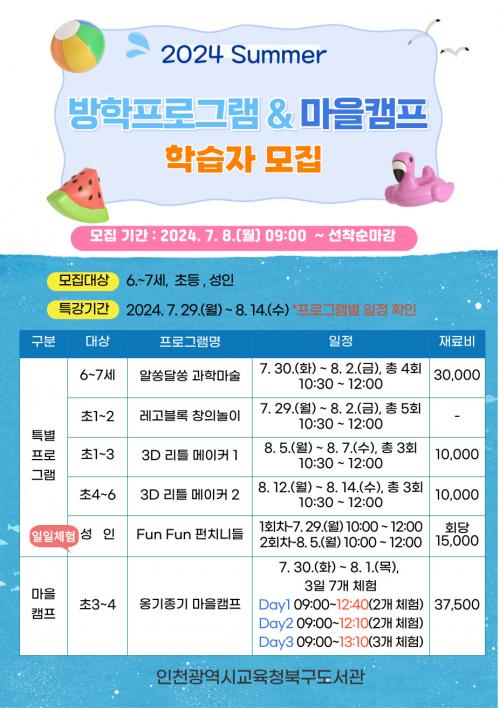 ÀÎõ±¤¿ª½Ã±³À°Ã» ºÏ±¸¡¤Á־ȵµ¼­°ü, ¿©¸§¹æÇРƯº°ÇÁ·Î±×·¥ ¿î¿µ