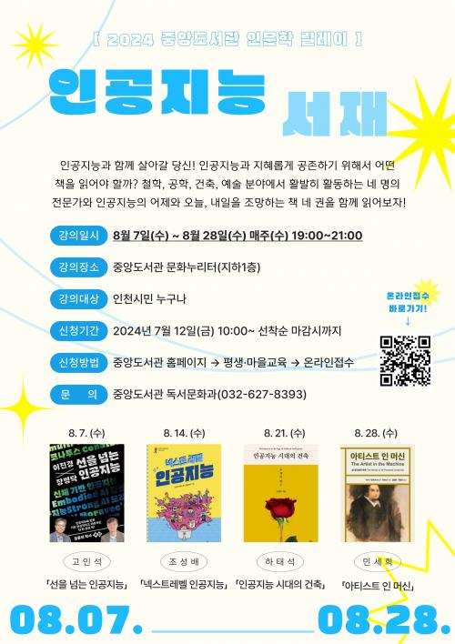 [½Åµ¿¾Æ¹æ¼Û ÀÎõ= À±¹Î½Ä±âÀÚ] ÀÎõ±¤¿ª½Ã±³À°Ã»Áß¾Óµµ¼­°ü(°üÀå Á¤°æ¾Ö)Àº ÀаȾ² »ç¾÷ÀÇ ÀÏȯÀ¸·Î 8¿ù 7ÀϺÎÅÍ 28ÀϱîÁö ¸ÅÁÖ ¼ö¿äÀÏ ¡®2024³â Àι®ÇÐ ¸±·¹ÀÌ: ÀΰøÁö´É ¼­À硯¸¦ ÃÑ 4ȸ ¿î¿µÇÑ´Ù. Àι®ÇÐ ¸±·¹ÀÌ´Â ÀÎõ½Ã±³À°Ã» ¼Ò¼Ó 8°³ °ø°øµµ¼­°üÀÌ °øÅë ÁÖÁ¦¡¦