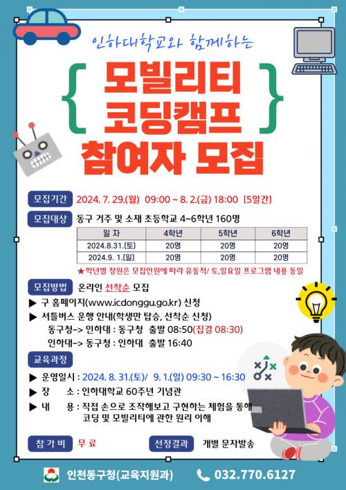 [½Åµ¿¾Æ¹æ¼Û ÀÎõ= À±¹Î½Ä±âÀÚ] ÀÎõ µ¿±¸(±¸Ã»Àå ±èÂùÁø)´Â 8¿ù 31ÀÏ~9¿ù 1ÀÏ ÀÎÇÏ´ëÇб³¿Í ÇÔ²²ÇÏ´Â ¡®¸ðºô¸®Æ¼ âÀÇÀ¶ÇÕ ÄÚµùÄ·ÇÁ¡¯¸¦ °³ÃÖÇÑ´Ù°í ¹àÇû´Ù. ÄÚµùÀ̶õ Çϳª ÀÌ»óÀÇ Ãß»óÀûÀÎ ¾Ë°í¸®ÁòÀ» ÇÁ·Î±×·¡¹ÖÀÌ °¡´ÉÇÑ ¾ð¾î¸¦ ÀÌ¿ëÇØ µðÁöÅзΠ±¸ÇöÇÏ´Â ±â¼úÀ» ¸»¡¦