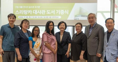 [½Åµ¿¾Æ¹æ¼Û=À̽ŵ¿±âÀÚ]ÀºÆò±¸(±¸Ã»Àå ±è¹Ì°æ)´Â Áö³­ 25ÀÏ ±¸¸³ ³»¸¦°Ç³Ê¼­½£À¸·Î µµ¼­°ü¿¡ ÁÖÇÑ ½º¸®¶ûÄ« ´ë»ç°üÀ¸·ÎºÎÅÍ µµ¼­ ±âÁõÀ» ¹Þ¾Ò´Ù°í ¹àÇû´Ù. À̳¯ ±âÁõ½ÄÀº ³»¸¦°Ç³Ê¼­½£À¸·Î µµ¼­°üÀÌ ÁøÇà ÁßÀÎ ¡®ÀºÆò, ¼¼°èÀÇ ½Ã¸¦ ¸¸³ª´Ù¡¯ Àü½ÃÀÇ ÀÏȯÀ¸·Î °¢±¹ ÁÖ¡¦