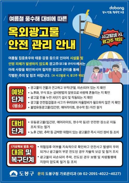 [½Åµ¿¾Æ¹æ¼Û=À̽ŵ¿±âÀÚ] µµºÀ±¸(±¸Ã»Àå ¿À¾ð¼®)°¡ 8¿ùºÎÅÍ 9¿ù±îÁö ´ë´ëÀûÀÎ ¿Á¿Ü±¤°í¹° ¾ÈÀü°ü¸®¿¡ ³ª¼±´Ù. È£¿ì, ÅÂdzÀÌ ¸¹Àº ÀÌ ±â°£ ÁÖ¹ÎÀÇ ¾ÈÀü»ç°í¸¦ ¿¹¹æÇϱâ À§Çؼ­´Ù. ¾Õ¼­ ±¸´Â ¡®2024³â dz¼öÇØ ´ëºñ ¿Á¿Ü±¤°í¹° ¾ÈÀü°ü¸® °­È­ °èȹ¡¯À» ¼ö¸³Çϰí Áö³­ 1ÀÏ¡¦