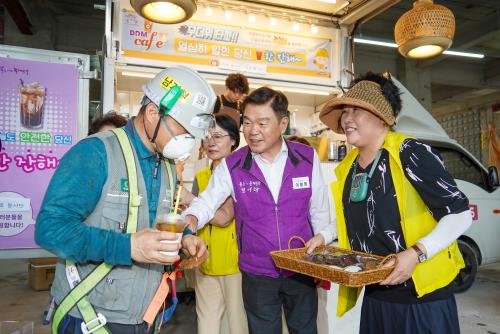 [½Åµ¿¾Æ¹æ¼Û=À̽ŵ¿±âÀÚ]8¿ù 13ÀÏ µ¿´ë¹®±¸(±¸Ã»Àå ÀÌÇÊÇü)¿¡¼­´Â Àç³­ ´ëÀÀ ÀÚ¿øºÀ»ç´Üü ¡®¹Ù·ÎºÀ»ç´Ü¡¯ÀÌ ¿©¸§Ã¶ °Ç¼³ ±Ù·ÎÀÚÀÇ ¿Â¿­Áúȯ ¿¹¹æÀ» À§ÇØ Àå¾Èµ¿¿¡ À§Ä¡ÇÑ ¡®¾¾Á¨ ÀÇ·áÀç´Ü ¼­¿ïº»¿ø »ç¿Á¡¯ °Ç¸³ ÇöÀå ±Ù·ÎÀÚ 250¿© ¸í¿¡°Ô ½Ã¿øÇÑ À½·á¸¦ Á¦°øÇß´Ù. ÀÌ¡¦