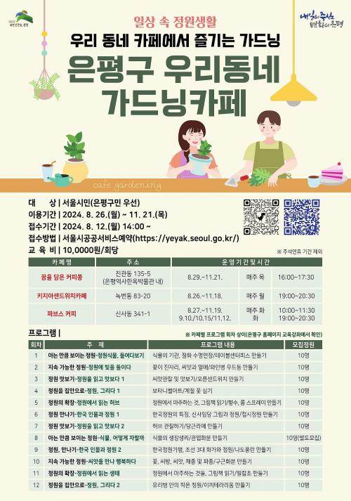 [½Åµ¿¾Æ¹æ¼Û=À̽ŵ¿±âÀÚ] ÀºÆò±¸(±¸Ã»Àå ±è¹Ì°æ)´Â ±¸¹ÎÀ» ´ë»óÀ¸·Î ¿À´Â 26ÀϺÎÅÍ 11¿ù 21ÀϱîÁö µµ½ÉÇü °¡µå´× üÇè ÇÁ·Î±×·¥ÀÎ ¡®ÀºÆò±¸ ¿ì¸® µ¿³× °¡µå´× Ä«Æä¡¯¸¦ ¿î¿µÇÑ´Ù°í ¹àÇû´Ù. ¡®ÀºÆò±¸ ¿ì¸® µ¿³× °¡µå´× Ä«Æä¡¯´Â Áø°üµ¿ÀÇ Ä¿ÇÇÀü¹®Á¡ ¡®²ÞÀ» ´ãÀº Ä¿ÇÇ¡¦