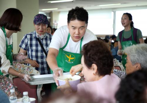 [½Åµ¿¾Æ¹æ¼Û=À̽ŵ¿±âÀÚ] µµºÀ±¸(±¸Ã»Àå ¿À¾ð¼®) â4µ¿Àº Áö³­ 8¿ù 13ÀÏ Çѱ¹¸¶»çȸ µµºÀÁö»ç(Áö»çÀå ±è¼¼¿µ)¿Í ¼­¿ï »çȸº¹Áö°øµ¿¸ð±ÝȸÀÇ ÈÄ¿øÀ» ¹Þ¾Æ º¹´ÞÀÓ Çà»ç¸¦ °³ÃÖÇß´Ù. À̳¯ Çà»ç´Â ¹«´õÀ§¿¡ Ãë¾àÇÑ Áö¿ª ¾î¸£½ÅµéÀÇ °Ç°­ÇÑ ¿©¸§³ª±â¸¦ À§ÇØ ¸¶·ÃµÆ´Ù. â4¡¦