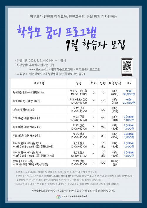 ÀÎõ±¤¿ª½Ã±³À°Ã»Æò»ýÇнÀ°ü, 'Çкθð ²Þµð ÇÁ·Î±×·¥' 9¿ù ÇнÀÀÚ ¸ðÁý