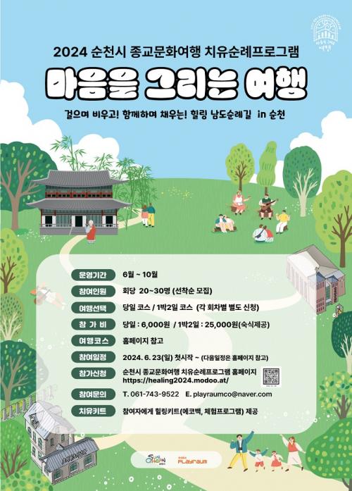 [½Åµ¿¾Æ¹æ¼Û ¼øÃµ=±è¿ëÈÆ ±âÀÚ] ¼øÃµ½Ã(½ÃÀå ³ë°ü±Ô)°¡ ¼øÃµ Á¾±³¹®È­¿©Çà Ä¡À¯¼ø·ÊÇÁ·Î±×·¥ Âü°¡ÀÚ¸¦ ¸ðÁýÇÑ´Ù. °ÉÀ¸¸ç ºñ¿ì°í, ÇÔ²²Çϸç ä¿ì´Â ¡°¸¶À½À» ±×¸®´Â ¿©ÇࡱÀ̶ó´Â ÁÖÁ¦·Î ´çÀÏÇü(»çÂûüÇè), ¼÷¹ÚÇü(ÅÛÇýºÅ×ÀÌ, µå·ÎÀ×üÇè µî), ´ëÁß°ø°³Çü(4ÀÎ4»ö Å䡦