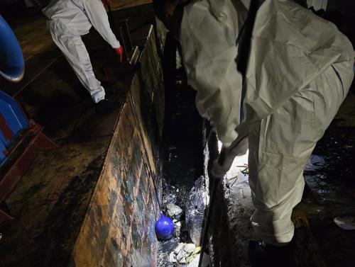 ¿©¼öÇØ°æ, ±¹µ¿Ç׿¡ À¯¼ºÈ¥ÇÕ¹° ¸ô·¡ ¹ö¸° °ø»ç¿ë ¼±¹Ú ÃßÀû ³¡¿¡ Àû¹ßµÅ