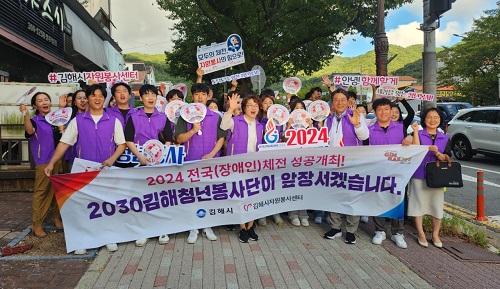 <@1> [½Åµ¿¾Æ¹æ¼Û=³²±Ã¿µ±â ±âÀÚ] ±èÇØ½ÃÀÚ¿øºÀ»ç¼¾ÅÍ´Â Áö³­ 28ÀÏ ±èÇØ½Ã ÁÖ¿ä ½Ã°¡Áö ÀÏ¿ø¿¡¼­ 2030±èÇØÃ»³âºÀ»ç´Ü 40¸íÀÌ Âü¿©ÇÑ °¡¿îµ¥ Àü±¹(Àå¾ÖÀÎ)üÀü ¼º°ø °³ÃÖ¸¦ À§ÇÑ °Ô¸±¶ó °Å¸® Ä·ÆäÀÎÀ» ÆîÃÆ´Ù°í 29ÀÏ ¹àÇû´Ù. À̹ø Ä·ÆäÀÎÀº 10¿ù·Î ´Ù°¡¿Â Àü±¹(Àå¾Ö¡¦