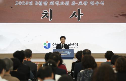 [½Åµ¿¾Æ¹æ¼Û=À̽ŵ¿±âÀÚ] ¡à Àü¶ó³²µµ±³À°Ã»(±³À°°¨ ±è´ëÁß)Àº 28ÀÏ Ã»»ç ´ëȸÀǽǿ¡¼­ 2024³â 8¿ù ¸» ÅðÁ÷±³¿ø ÈÆ¡¤Æ÷Àå Àü¼ö½ÄÀ» °³ÃÖÇß´Ù. ¡à À̹ø Á¤ºÎÆ÷»ó ¹× Àå°üǥâ ´ë»óÀÚ´Â À¯¡¤ÃÊ¡¤Áßµî ±³¿ø 334¸íÀ¸·Î, ȲÁ¶±ÙÁ¤ÈÆÀå 19¸í, È«Á¶±ÙÁ¤ÈÆÀå 65¸í, ³ìÁ¶±ÙÁ¤¡¦