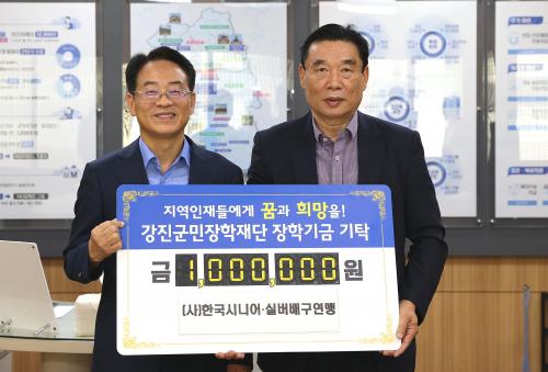 [½Åµ¿¾Æ¹æ¼Û°­Áø=¹Ú±¤¿Á±âÀÚ] (»ç)Çѱ¹½Ã´Ï¾î¡¤½Ç¹ö ¹è±¸¿¬¸Í ±è¿ëÅ ȸÀåÀÌ Áö³­´Þ 29ÀÏ 100¸¸¿øÀÇ ÀåÇбÝÀ» °­Áø±º¹ÎÀåÇÐÀç´Ü(ÀÌ»çÀå °­Áø¿ø)¿¡ ±âŹÇß´Ù. ±è¿ëÅ ȸÀåÀº ¡°°­Áø ûÀÚ¹è ¹è±¸´ëȸ¿¡ ¾Õ¼­ °³ÃÖÁöÀÎ °­Áø±º¿¡ ÀǹÌÀÖ´Â ÀÏÀ» ÇÏ°í ½Í¾î ¹è±¸¿¬¸Í ȸ¿øµé¡¦