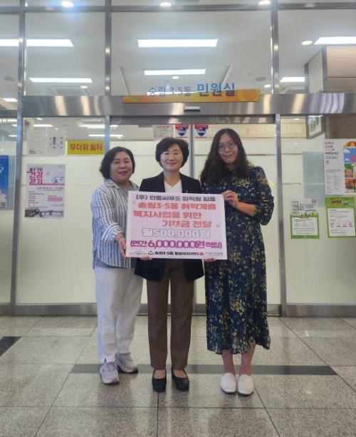 [½Åµ¿¾Æ¹æ¼Û ÀÎõ= À±¹Î½Ä±âÀÚ] ¢ßÇѿᄒǪµå(ÀÎõ ¼­±¸ ¼ÒÀç)°¡ ¸Å´Þ 50¸¸¿øÀ» µ¿±¸ ¼Û¸²3¡¤ 5µ¿ ÇàÁ¤º¹Áö¼¾ÅÍ¿¡ Á¤±âÀûÀ¸·Î ±âºÎÇϱâ·Î Çß´Ù. ±âºÎ±ÝÀº »çȸº¹Áö°øµ¿¸ð±Ýȸ¸¦ ÅëÇØ ¼Û¸²3¡¤5µ¿ Ãë¾à°èÃþ ¾Æµ¿, û¼Ò³â, ÁßÀå³â, ³ëÀÎ µî ¸ðµç ¿¬·ÉÃþÀ» À§ÇÑ ´Ù¾çÇÑ¡¦