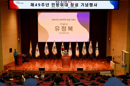 [½Åµ¿¾Æ¹æ¼Û ÀÎõ= À±¹Î½Ä±âÀÚ] ÀÎõ±¤¿ª½Ã´Â 10¿ù 4ÀÏ ÀÎõ°æÁ¦ÀÚÀ¯±¸¿ªÃ» ´ë°­´ç¿¡¼­ ¡®ÃàÁ¦, ¶Ç ´Ù¸¥ Çå½Å!¡¯À» ÁÖÁ¦·Î Á¦49Áֳ⠹ιæÀ§´ë â¼³ ±â³äÇà»ç¸¦ °³ÃÖÇÏ¿© ¹Î¹æÀ§´ë¿øµéÀÇ Çå½ÅÀ» °Ý·ÁÇϰí, ¹Î¹æÀ§´ëÀÇ ¼ÒÁßÇÔÀ» µÇ»õ±â´Â ½Ã°£À» °¡Á³´Ù. ¹Î¹æÀ§´ë´Â ¡¦