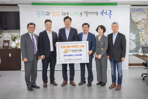 [½Åµ¿¾Æ¹æ¼Û ÀÎõ= À±¹Î½Ä±âÀÚ] ÀÎõ ¼­±¸ ¿À·ùµ¿ ¼ÒÀç ¢ß¼±ºÀ½Äǰ(´ëÇ¥ °íÁ¾±¹)Àº Áö³­ 7ÀÏ Áö¿ª ³» ¾î·Á¿î ÀÌ¿ôÀ» À§ÇØ ½á´Þ¶ó¸ç ÀÌ¿ô»ç¶û ¼ºÇ° ÇÑ¿ì»ç°ñÀ°¼ö 3,800ÀκÐÀ» »ç¶ûÀǽҳª´®¿îµ¿º»ºÎÁß¾Óȸ(ÀÌ»çÀå À̼±±¸ ¸ñ»ç)¿¡ Àü´ÞÇÏ¿´´Ù. À̹ø ÈÄ¿øµÈ ¹°Ç°Àº ¡®¡¦