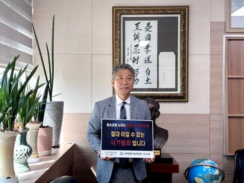 [½Åµ¿¾Æ¹æ¼Û ¼øÃµ½Ã=À̽ŵ¿±âÀÚ] ¼øÃµÃ»¾Ï°íµîÇб³ ¿À½Âö ±³ÀåÀÌ 10ÀÏ Ã»¼Ò³â ºÒ¹ý »çÀ̹ö µµ¹Ú ¹®Á¦ÀÇ ½É°¢¼ºÀ» ¾Ë¸®°í µµ¹Ú ±ÙÀýÀ» À§ÇÑ »çȸÀû °ü½ÉÀ» ³ôÀ̱â À§ÇØ Ã»¼Ò³â µµ¹Ú ±ÙÀý ¸±·¹ÀÌ Ã§¸°Áö¿¡ µ¿ÂüÇß´Ù. û¼Ò³â µµ¹ÚÀÇ À§Ç輺À» ¾Ë¸®°í È®»êÀ» Â÷´ÜÇϱ⡦