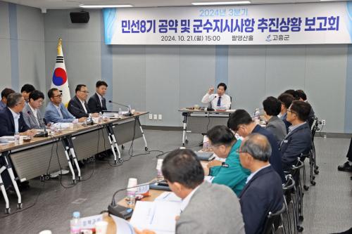 [½Åµ¿¾Æ¹æ¼ÛÀü³²°íÈï=¹Ú±¤¿Á±âÀÚ] °íÈﱺ(±º¼ö °ø¿µ¹Î)Àº Áö³­ 21ÀÏ ±ºÃ» ÆÈ¿µ»êȦ¿¡¼­ 2024³â 3ºÐ±â ¹Î¼± 8±â °ø¾à ¹× Áö½Ã»çÇ× ÃßÁø»óȲ º¸°íȸ¸¦ °³ÃÖÇß´Ù°í ¹àÇû´Ù. À̳¯ º¸°íȸ¿¡´Â °ø¿µ¹Î ±º¼ö¿Í Àü ºÎ¼­Àå, °ü·Ã ÆÀÀå µîÀÌ Âü¼®ÇÏ¿© ¹Î¼± 8±â °ø¾à°ú ±º¹Î »ýȰ¡¦