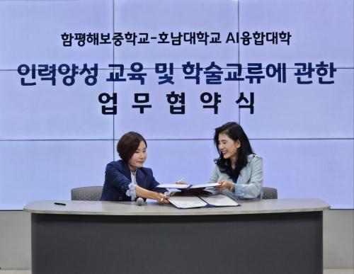 [½Åµ¿¾Æ¹æ¼Û ÇÔÆò±º=À̽ŵ¿±âÀÚ] ÇÔÆòÇØº¸ÁßÇб³´Â Áö³­ 10¿ù 21ÀÏ(¿ù) ¿ÀÈÄ 2½Ã È£³²´ëÇб³ IT ½ºÄù¾î 3Ãþ ÅëÇÕ´º½º¼¾ÅÍ¿¡¼­ È£³²´ë AIÀ¶ÇÕ´ëÇаú AIÀÎÀç ¾ç¼ºÀ» À§ÇÑ ¾÷¹«Çù¾à(MOU)À» ü°áÇß´Ù. À̹ø Çù¾àÀº ÇÔÆòÇØº¸Áß ÇлýµéÀÇ AI ±³À° Ȱ¼ºÈ­¿Í ¹Ì·¡ ¿ª·® Á¦°í¡¦