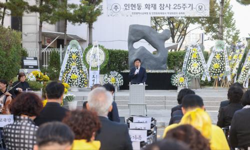 [½Åµ¿¾Æ¹æ¼Û ÀÎõ= À±¹Î½Ä±âÀÚ] ÀÎõ±¤¿ª½Ã±³À°Ã»(±³À°°¨ µµ¼ºÈÆ)Àº ÀÎÇöµ¿ È­Àç Âü»ç 25Áֱ⸦ ¸Â¾Æ Èñ»ýÀÚµéÀ» ±â¾ïÇϰí, ¾ÈÀüÀÇ Á߿伺À» µÇ»õ±â´Â Ã߸ð½ÄÀ» 30ÀÏ °³ÃÖÇß´Ù. ¿ÃÇØ´Â ÀÎÇöµ¿ È­Àç Âü»ç 25ÁÖ±â·Î ÀÎõ±¤¿ª½Ã±³À°Ã»Àº À¯°¡Á·À» ºñ·ÔÇÑ Ã߸𰴵顦