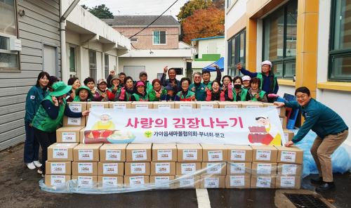 [½Åµ¿¾Æ¹æ¼Û °æ³²ÇÔ¾È=À̽ŵ¿±âÀÚ] ÇÔ¾È °¡¾ßÀ¾ »õ¸¶À»ÇùÀÇȸ¿Í ºÎ³àȸ´Â Áö³­ 25ÀÏ °¡¾ßÀ¾ÇàÁ¤º¹Áö¼¾ÅÍ ÁÖÂ÷Àå¿¡¼­ ¾î·Á¿î ÀÌ¿ôÀ» À§ÇÑ ±èÀå ´ã±×±â Çà»ç¸¦ ÁøÇàÇß´Ù. À̹ø Çà»ç´Â ÇԾȽôϾîŬ·´¿¡¼­ Á÷Á¢ ±â¸¥ ¹èÃß 900Æ÷±â¸¦ ±âŹ¹Þ¾Æ »õ¸¶À» ȸ¿øµé 60¿© ¸íÀÌ Âü¡¦