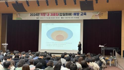 [½Åµ¿¾Æ¹æ¼Û µµºÀ±¸=À̽ŵ¿±âÀÚ] µµºÀ±¸´Â Áö³­ 11¿ù 18ÀÏ µµºÀ±¸Ã» 2Ãþ ¼±ÀκÀȦ¿¡¼­ Àü Á÷¿øÀ» ´ë»óÀ¸·Î Á÷Àå ³» ±«·ÓÈû(°©Áú) ¿¹¹æ ±³À°À» ½Ç½ÃÇß´Ù. À̹ø ±³À°Àº Á÷Àå ³» ±«·ÓÈû¿¡ ´ëÇÑ ÀνÄÀ» °³¼±ÇÏ°í »óÈ£ Á¸ÁßÇÏ´Â Á÷Àå ºÐÀ§±â Á¶¼ºÇϰíÀÚ ¸¶·ÃµÆ´Ù. ±³À°¡¦