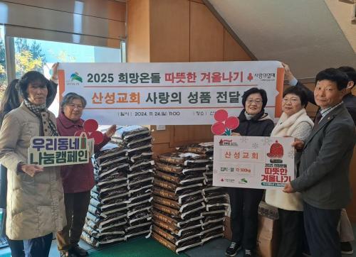 [½Åµ¿¾Æ¹æ¼Û ÀºÆò±¸=À̽ŵ¿±âÀÚ] ÀºÆò±¸ ºÒ±¤1µ¿Àº Áö³­ 24ÀÏ »ê¼º±³È¸·ÎºÎÅÍ Èñ¸Á¿Âµ¹ µû¶æÇÑ °Ü¿ï³ª±â »ç¾÷ ÀÏȯÀ¸·Î ½Ò 10kg 50Æ÷´ë¿Í ±èÄ¡ 10kg¾¿ 50¹Ú½º¸¦ Àü´Þ¹Þ¾Ò´Ù°í ¹àÇû´Ù. ºÒ±¤1µ¿°ú »ê¼º±³È¸´Â ½Ò°ú ±èÄ¡¸¦ Àú¼Òµæ 50°¡±¸¿¡ Áö¿øÇß´Ù. À̹ø ¼ºÇ° Àü´ÞÀº ¡¦
