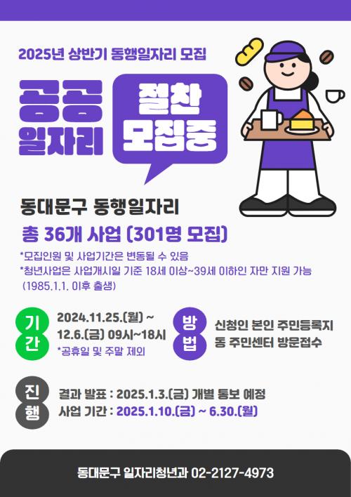 µ¿´ë¹®±¸, 2025³â »ó¹Ý±â µ¿ÇàÀÏÀÚ¸®»ç¾÷ Âü¿©ÀÚ ¸ðÁý