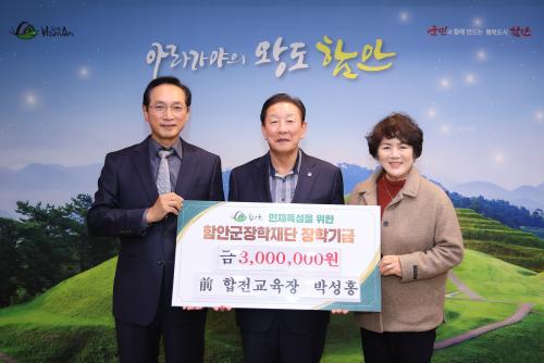 [½Åµ¿¾Æ¹æ¼Û Àü³²ÇÔ¾È=À̽ŵ¿±âÀÚ] ÇԾȱº ¹ý¼ö¸é Ȳ»ç¸® Ãâ½ÅÀÇ ¹Ú¼ºÈ« Àü ÇÕõ±³À°ÀåÀº °íÇâÀÎÀçÀ°¼ºÀ» À§ÇÑ ÀåÇбâ±Ý 300¸¸ ¿øÀ» Áö³­ÇØ¿¡ ÀÌ¾î ¿ÃÇØµµ ÇԾȱºÀåÇÐÀç´Ü¿¡ ±âŹÇß´Ù. ±âŹ½Ä¿¡¼­ ¹Ú¼ºÈ« Àü ÇÕõ±³À°ÀåÀº ¡°°íÇâÀÇ ÇлýµéÀÌ ÀÚ½ÅÀÇ ²ÞÀ» ÆîÃÄ ÇÔ¾È ¡¦