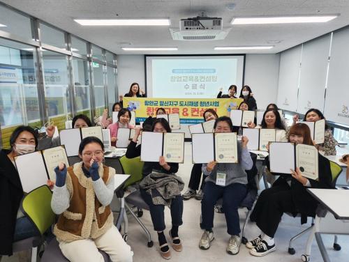 [½Åµ¿¾Æ¹æ¼Û °æ³²ÇÔ¾È=À̽ŵ¿±âÀÚ] ÇԾȱºÀº Áö³­ 3ÀÏ ÇԾȱº µµ½ÃÀç»ýÁö¿ø¼¾ÅÍ¿¡¼­ ¼ö°­»ý ¹× °ü°èÀÚ 20¿© ¸íÀÌ Âü¼®ÇÑ °¡¿îµ¥ ¸»»êÁö±¸ µµ½ÃÀç»ý û³âÇԾȿ³ª »ç¾÷ÀÇ ÀÏȯÀ¸·Î ÁøÇàÇÑ ¡®Ã¢¾÷±³À° & ÄÁ¼³ÆÃ¡¯ °úÁ¤ ¼ö·á½ÄÀ» ÁøÇàÇß´Ù. À̹ø ±³À°°úÁ¤Àº Áö³­ 10¿ù ¡¦