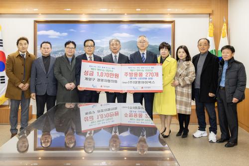 [½Åµ¿¾Æ¹æ¼Û ÀÎõ= À±¹Î½Ä±âÀÚ]ÀÎõ±¤¿ª½Ã °è¾ç±¸(±¸Ã»Àå À±È¯)´Â Áö³­ 3ÀÏ °è¾ç±¸ °æ¿µÀÚÇùÀÇȸ(ȸÀå ÇÔÀ念)¿Í (ÁÖ)´ë¸í¾ÆÀ̳ؽº(´ëÇ¥ ±è±¹È¯)°¡ ÀÌ¿ô µ½±â ¼º±Ý 1,070¸¸ ¿ø°ú ÁÖ¹æ¿ëǰ 270°³(ȯ°¡¾× 1,025¸¸ ¿ø »ó´ç)¸¦ ±âŹÇß´Ù°í ¹àÇû´Ù. Áö¿ª»çȸ °æÁ¦´ÜüÀÎ ¡¦