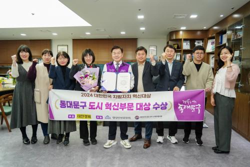 [½Åµ¿¾Æ¹æ¼Û µ¿´ë¹®±¸=À̽ŵ¿±âÀÚ] µ¿´ë¹®±¸°¡ Çõ½ÅÀûÀÎ ½º¸¶Æ®µµ½Ã Á¤Ã¥À» ÃßÁøÇØ ¡®2024 ´ëÇѹα¹ Áö¹æÀÚÄ¡Çõ½Å´ë»ó¡¯¿¡¼­ µµ½ÃÇõ½ÅºÎ¹® ´ë»óÀ» ¼ö»óÇß´Ù. À̹ø ¼ö»óÀº ÷´Ü ±â¼úÀ» Ȱ¿ëÇÑ ½º¸¶Æ®µµ½Ã Á¤Ã¥°ú ÁֹΠ¾ÈÀü ¹× »îÀÇ Áú Çâ»óÀ» À§ÇÑ ½º¸¶Æ® ¼­ºñ½º°¡ ³ô¡¦