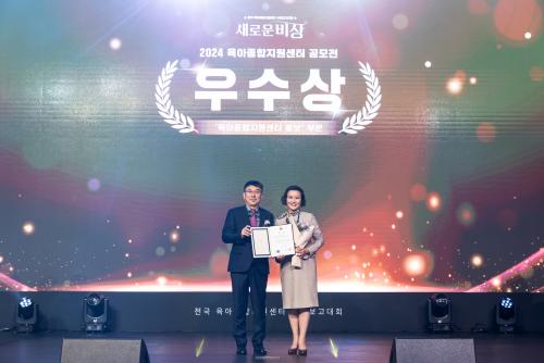 [½Åµ¿¾Æ¹æ¼Û °­³²±¸=À̽ŵ¿±âÀÚ] ²ÞÀÌ ¸ðÀÌ´Â µµ½Ã, ¹Ì·¡¸¦ ±×¸®´Â °­³²±¸°¡ ¡®2024 À°¾ÆÁ¾ÇÕÁö¿ø¼¾ÅÍ °ø¸ðÀü¡¯ È«º¸ ºÐ¾ß¿¡¼­ ±³À°ºÎÀå°ü»ó(¿ì¼ö»ó)À» ¼ö»óÇß´Ù. À̹ø °ø¸ðÀüÀº ±³À°ºÎ°¡ ÁÖÃÖÇϰí Áß¾ÓÀ°¾ÆÁ¾ÇÕÁö¿ø¼¾ÅͰ¡ ÁÖ°üÇØ Àü±¹ 136°³ À°¾ÆÁ¾ÇÕÁö¿ø¼¾Å͸¦ ´ë»ó¡¦