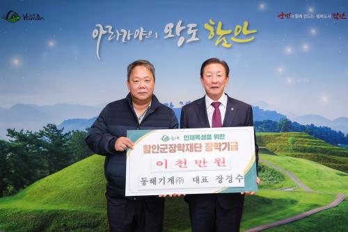[½Åµ¿¾Æ¹æ¼Û °æ³²ÇÔ¾È=À̽ŵ¿±âÀÚ] ÇԾȱºÀº µ¿Çرâ°è¢ß Àå°æ¼ö ´ëÇ¥À̻簡 Áö³­ 10ÀÏ ÇԾȱºÀåÇÐÀç´Ü¿¡ Áö¿ªÀÎÀç À°¼ºÀ» À§ÇÑ ÀåÇбâ±Ý 2000¸¸ ¿øÀ» ±âŹÇß´Ù°í ¹àÇû´Ù. ±âŹ½Ä¿¡´Â Àå°æ¼ö ´ëÇ¥ÀÌ»ç¿Í Àå°æ¿î Àü¹«°¡ Âü¼®ÇØ Áö¿ªÀÇ ±³À° ¹ßÀü°ú ÀÎÀç ¾ç¼ºÀ» À§ÇÑ ¡¦