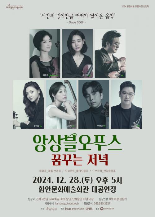 [½Åµ¿¾Æ¹æ¼Û °æ³²ÇÔ¾È=À̽ŵ¿±âÀÚ] ÇԾȹ®È­¿¹¼úȸ°ü¿¡¼­ ¿À´Â 12¿ù 28ÀÏ(Åä) ¿ÀÈÄ 5½Ã ¾Ó»óºí¿ÀǪ½ºÀÇ ²Þ²Ù´Â Àú³áÀÌ ´ë°ø¿¬Àå ¹«´ë¿¡ ¿À¸¥´Ù. À̹ø °ø¿¬Àº ¿¹¼ú°æ¿µÁö¿ø¼¾ÅÍÀÇ °ø¿¬¿¹¼ú À¯Åë °ø¸ð»ç¾÷À¸·Î ¼±Á¤µÈ ÀÛǰÀÌ´Ù. ¡®¾Ó»óºí¿ÀǪ½º°¡ ¼±»çÇÏ´Â Å©¸®½º¸¶½º¡¦