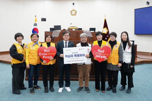 [½Åµ¿¾Æ¹æ¼Û Çϳ²½Ã=À̽ŵ¿±âÀÚ] Çϳ²½ÃÀÇȸ ±Ý±¤¿¬ ÀÇÀåÀº 19ÀÏ ÀÇȸ¿¡¼­ ¡®2025³â ´ëÇÑÀû½ÊÀÚ»ç Æ¯º°È¸ºñ Àü´Þ½Ä¡¯À» °®°í, ÀÌÀçÁ¤ ´ëÇÑÀû½ÊÀÚ»ç °æ±âµµÁö»ç ȸÀå¿¡°Ô Ưº°È¸ºñ 100¸¸ ¿øÀ» Àü´ÞÇß´Ù. À̹ø Àü´Þ½ÄÀº ¡®Àû½ÊÀÚȸºñ¿Í ÇÔ²² ¸¶À½ÀÌ ´ê´Â °÷, »õ·Î¿î Èñ¡¦