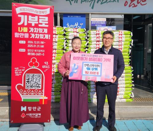 [½Åµ¿¾Æ¹æ¼Û °æ³²ÇÔ¾È=À̽ŵ¿±âÀÚ] ÇԾȱºÀº ÀξֳëÀκ¹Áö¼¾ÅÍ´Â 17ÀÏ ¾î·Á¿î ÀÌ¿ôµ½±â ¼º±ÝÀ¸·Î 300¸¸ ¿øÀ» ±âŹÇß´Ù°í ¹àÇû´Ù. À̳¯ ±âŹ½Ä¿¡´Â º¹ÁöÁ¤Ã¥°ú °úÀå À¯¿øÁÖ¿Í ÀξֳëÀκ¹Áö¼¾ÅÍ ´ëÇ¥ ±è±âÈ­¸¦ ºñ·ÔÇÑ °ü°èÀÚ°¡ Âü¼®ÇßÀ¸¸ç, ±âŹµÈ ¼º±ÝÀº °øµ¿¸ð±Ýȸ¡¦