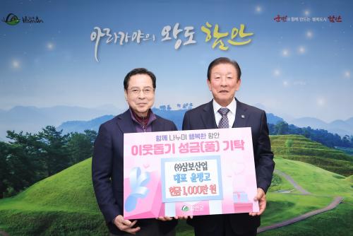[½Åµ¿¾Æ¹æ¼Û °æ³²ÇÔ¾È=À̽ŵ¿±âÀÚ] (ÁÖ)»ïº¸»ê¾÷Àº Áö³­ 23ÀÏ ¼º±Ý 1,000¸¸ ¿øÀ» ÇԾȱº¿¡ ±âŹÇϸ鼭 Èñ¸Á2025³ª´®Ä·ÆäÀο¡ Âü¿©Çß´Ù. À̳¯ ±âŹ½Ä¿¡´Â Á¶±ÙÁ¦ ÇԾȱº¼ö¿Í (ÁÖ)»ïº¸»ê¾÷ ´ëÇ¥ À±º´°í ¿Ü °ü°èÀÚµéÀÌ Âü¼®ÇßÀ¸¸ç, ±âŹµÈ ¼º±Ý 1,000¸¸ ¿øÀº °æ³²»çȸº¹¡¦