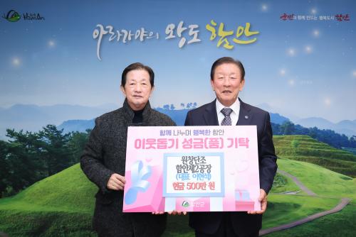 [½Åµ¿¾Æ¹æ¼Û °æ³²ÇÔ¾È=À̽ŵ¿±âÀÚ] ¿øÃ¢´ÜÁ¶ÇÔ¾ÈÁ¦2°øÀåÀº Áö³­ 23ÀÏ ¼º±Ý 500¸¸ ¿øÀ» ÇԾȱº¿¡ ±âŹÇϸ鼭 Èñ¸Á2025³ª´®Ä·ÆäÀο¡ Âü¿©Çß´Ù. À̳¯ ±âŹ½Ä¿¡´Â Á¶±ÙÁ¦ ÇԾȱº¼ö¿Í ¿øÃ¢´ÜÁ¶ÇÔ¾ÈÁ¦2°øÀå ´ëÇ¥ ÀÌÇö¼® ¿Ü °ü°èÀÚµéÀÌ Âü¼®ÇßÀ¸¸ç, ±âŹµÈ ¼º±Ý 500¸¸ ¿øÀº¡¦