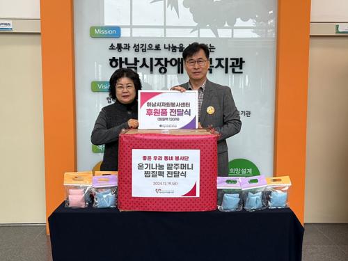 [½Åµ¿¾Æ¹æ¼Û Çϳ²½Ã=À̽ŵ¿±âÀÚ] (Àç)Çϳ²½ÃÀÚ¿øºÀ»ç¼¾ÅÍ´Â Áö³­ 20ÀÏ ÁÁÀº ¿ì¸® µ¿³× ºÀ»ç´ÜÀÌ ¸¸µç ¡®¿Â±â³ª´® ÆÏÁÖ¸Ó´Ï ÂòÁúÆÑ¡¯ 120°³¸¦ Çϳ²½ÃÀå¾ÖÀκ¹Áö°ü¿¡ Àü´ÞÇß´Ù. À̹ø Ȱµ¿Àº °ÅÁÖÁö Áß½ÉÀ¸·Î Ȱµ¿ÇÏ´Â ÁÁÀº ¿ì¸® µ¿³× ºÀ»ç´Ü°ú °­¼­´ëÇб³ ¿Ü±¹ÀÎ À¯Çлý¡¦