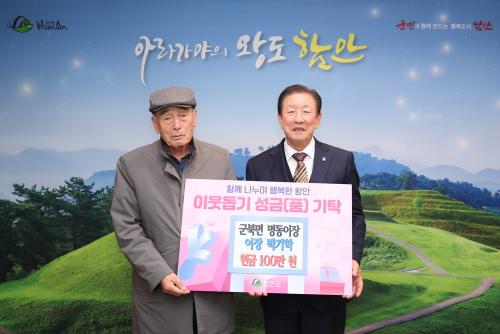 [½Åµ¿¾Æ¹æ¼Û °æ³²ÇÔ¾È=À̽ŵ¿±âÀÚ] ±ººÏ¸é ¸íµ¿ÀÌÀå ¹Ú±âÇÐÀº 24ÀÏ ¾î·Á¿î ÀÌ¿ô¿¡°Ô ½á´Þ¶ó¸ç 100¸¸ ¿øÀ» ÇԾȱº¿¡ ±âŹÇß´Ù. À̳¯ ±âŹ½Ä¿¡´Â Á¶±ÙÁ¦ ÇԾȱº¼ö¿Í ¹Ú±âÇÐ ±ººÏ¸é ¸íµ¿ÀÌÀå ¿Ü °ü°èÀÚµéÀÌ Âü¼®ÇßÀ¸¸ç, ±âŹµÈ ¼º±ÝÀº °øµ¿¸ð±Ýȸ¸¦ ÅëÇØ ¾î·Á¿î ÀÌ¿ô¿¡¡¦