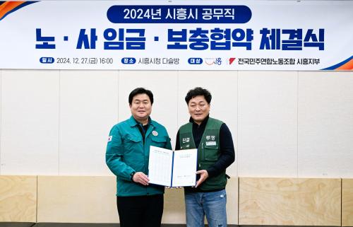 [½Åµ¿¾Æ¹æ¼Û ½ÃÈï½Ã=À̽ŵ¿±âÀÚ] ½ÃÈï½Ã´Â Áö³­ 27ÀÏ ½Ãû ´Ù½½¹æ¿¡¼­ ±³¼· ´ëÇ¥³ëµ¿Á¶ÇÕÀÎ Àü±¹¹ÎÁÖ¿¬Çճ뵿Á¶ÇÕ ½ÃÈïÁöºÎ¿Í 2024³âµµ °ø¹«Á÷ Àӱݤýº¸ÃæÇù¾àÀ» ü°áÇß´Ù. À̹ø Çù¾à ü°á½Ä¿¡´Â ÀÓº´Åà ½ÃÈï½ÃÀå, ÃÖ¶óÇö Àü±¹¹ÎÁÖ¿¬Çճ뵿Á¶ÇÕ À§¿øÀå ¹× ±è±â¹ü Àü±¹¡¦